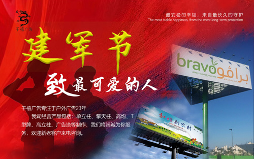 每一种方式的户外广告牌都是有独具特色的优点,例如单立柱广告宣传就受很多广告商的亲睐。你了解单立柱广告的投放实际效果怎样吗?我将为我们揭密,也有单立柱单立柱广告牌工程施工要注意什么,单立柱广告牌子品质如