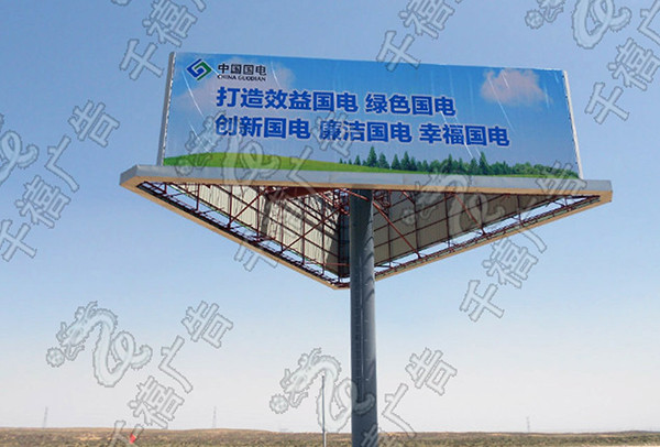 单立柱广告是一种室外广告方式,又被称为擎天柱、广告塔、高炮。单立柱广告牌的顶部构造主要是由排面与立杆构成。在其中的排面构造一般由点焊而成的钢架结构与表层白铁皮构成,其功效是做为广告公布的媒介。立杆是广