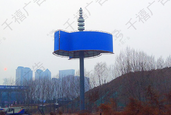 单立柱广告牌子在外观设计层面一直的比较一般,通常由一根圆柱体立起支撑点一个两面或是三面的排面比较一般,尽管单立柱的视觉效果撞击力强也敌不过千篇一律的外型,也正因而许多公司及地区打造出城市地标性单立柱广